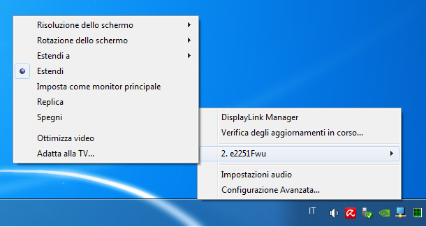 Consigliamo comunque di installare l’ultima versione, v6.3, disponibile sul sito DisplayLink al seguente link, in quanto il menù a tendina aggiunge ulteriori funzioni rapide, senza dover aprire la finestra del pannello di controllo.