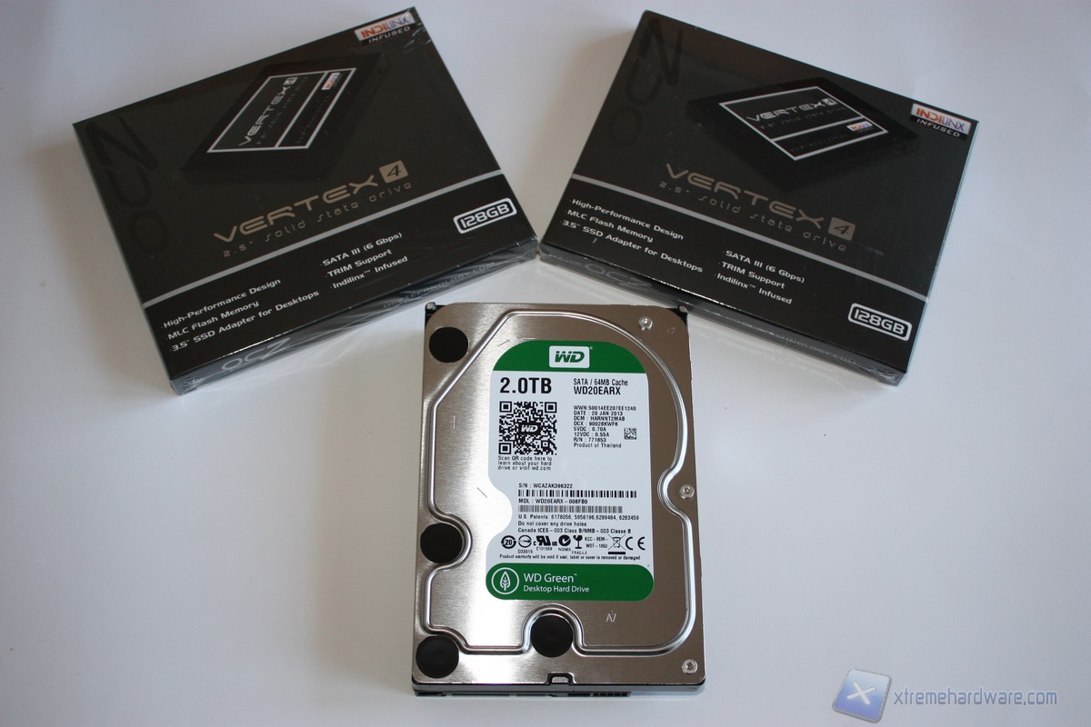Per testare il controller HighPoint RocketCache 3240x8 abbiamo usato una piattaforma con chipset Z77 avente 8 Gb di RAM a 1866 MHz. PEr testare il RocketCache abbiamo utilizzato un Hard Disk meccanico Western Digital Caviar Green da 2 TB e due SSD OCZ Vertex 4 da 128 GB.